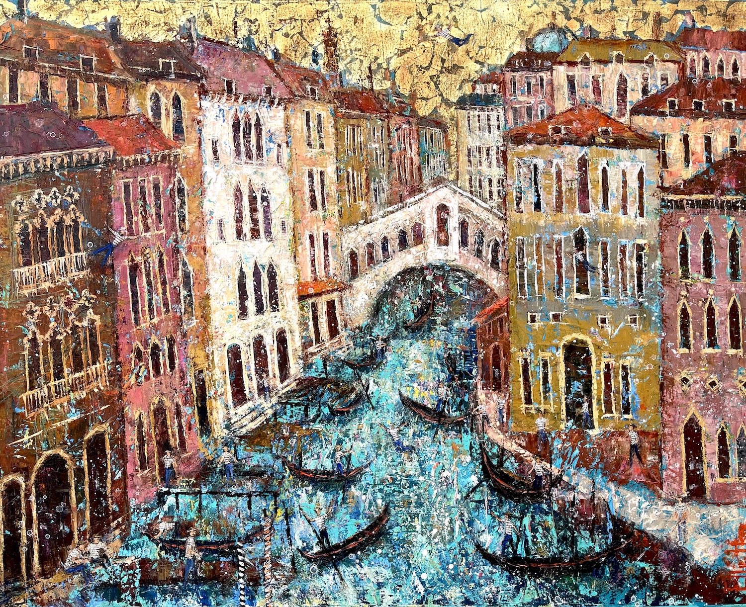 The palette knife is her tool of preference. and she uses it to build up layers of texture and depth of colour in her townscapes.